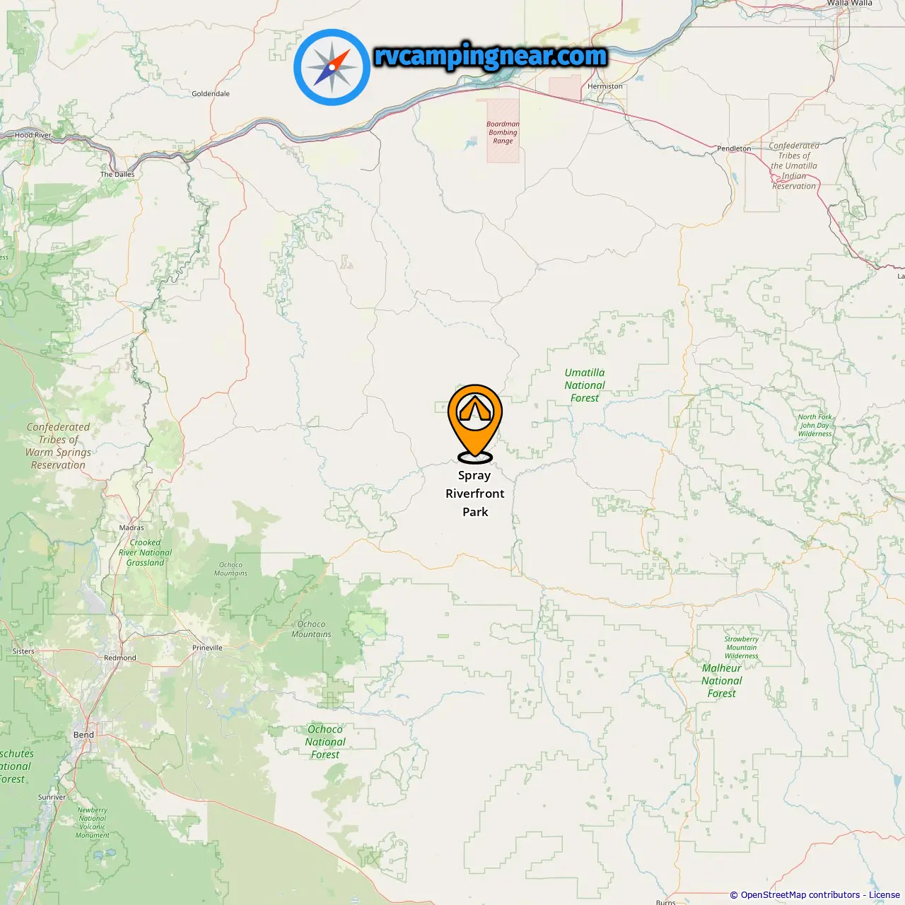 Encontre acampamentos nessas cidades perto de Spray