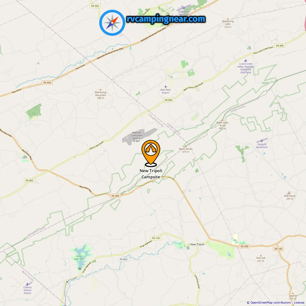 Localização de New Tripoli Campsite